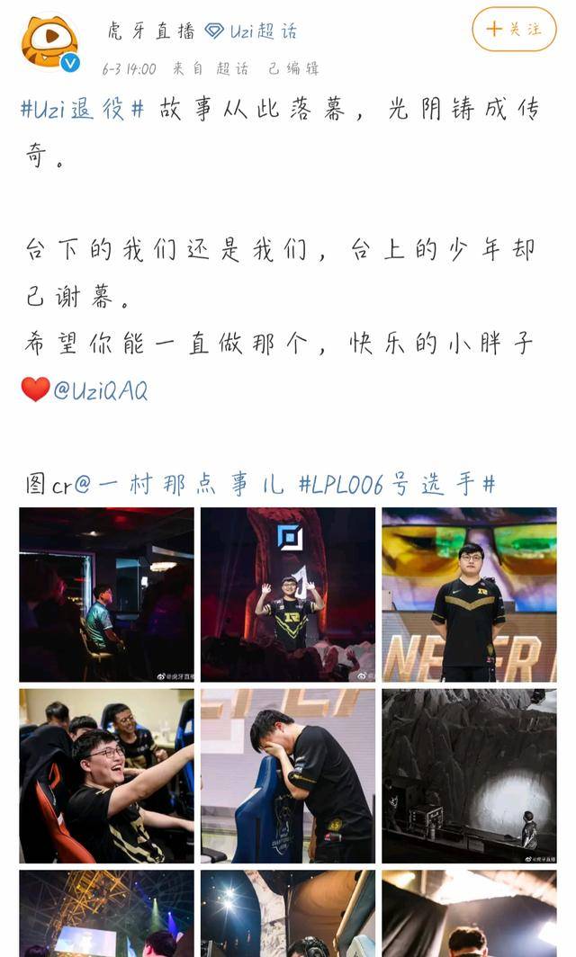 NBA直播,足球直播,篮球直播,欧洲杯直播,lol直播,英雄联盟直播,dota2直播,dnf直播,cf直播,绝地求生直播,王者荣耀直播,游戏直播,赛事直播,YY直播,美女直播,视频直播,足球直播6月3日下午两点整,UZI因身体原因正式宣布退役了。一代英雄联盟玩家心目中的传奇选手,从2012年初登职业赛场到2020年的退役,从青涩稚嫩的少年到伤痕累累的老将,UZI陪伴了我们整整八年的光阴,如今退役了,我们的青春也逝去了!但是一个好消息重磅来袭,虎牙主播姿态在4号的直播中爆料,UZI将在6号作为虎牙主播开启直播首秀,网友们大呼:我们的青春回来了!