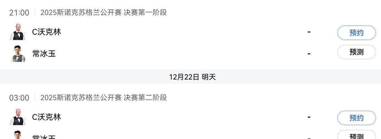 NBA直播,足球直播,篮球直播,欧洲杯直播,lol直播,英雄联盟直播,dota2直播,dnf直播,cf直播,绝地求生直播,王者荣耀直播,游戏直播,赛事直播,YY直播,美女直播,视频直播,足球直播2025年12月21日凌晨,苏格兰公开赛半决赛现场,中国23岁小将常冰玉面对排名赛12冠王马克·艾伦,开场就轰出单杆134分和108分两记破百。当比分定格在6-1,这位中国斯诺克新生代球员紧握拳头,职业生涯首次闯入排名赛决赛。