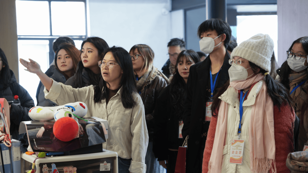 访企团参观了听花岛的内部工作环境以及荣誉墙。近距离观察了《太奶奶》、《家里家外》等爆款短剧的幕后工作诞生地。从案头堆叠的万字剧集分析报告,到拍摄现场精益求精的镜头打磨,“听花岛人” 对短剧的热忱与坚守,让学子们对精品短剧的创作日常有了更鲜活的感知。