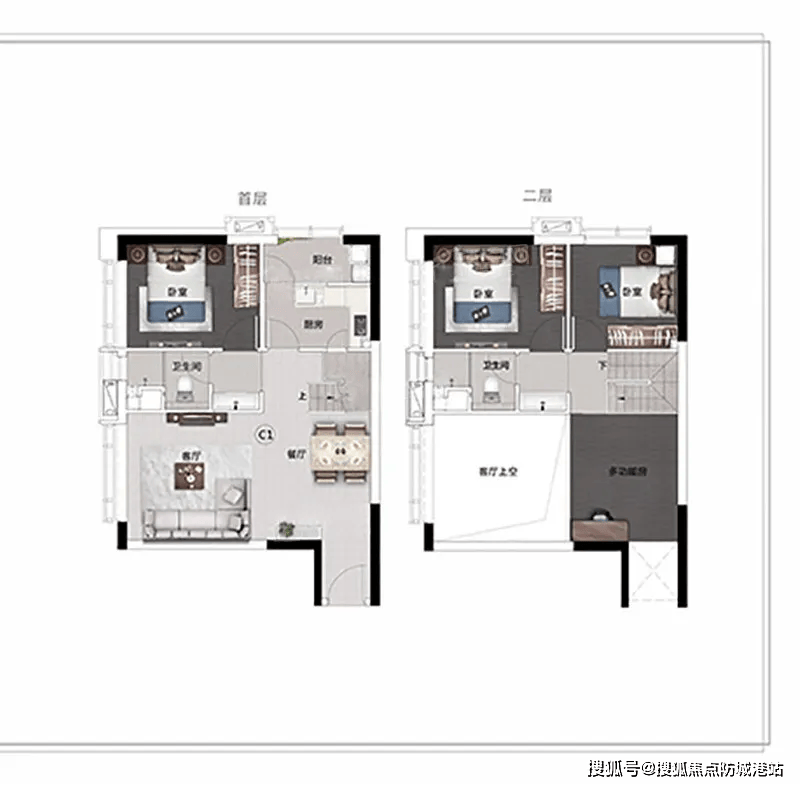 对于人口较多或追求更大空间的家庭,83.44㎡的阁楼三房堪称 “终极改善户型”。4.5 米挑高隔成两层后,可打造出三个独立房间,除了两个卧室之外,还能单独规划出一间书房或儿童房,满足孩子学习、大人办公的需求。灵动的空间设计,让每个家庭成员都有专属的活动区域,互不打扰。相比周边平层公寓,这款户型的得房率高出不少,花更少的钱就能享受更大的空间,性价比十足,无论是长期居住还是未来置换,都具有很强的市场竞争力。
