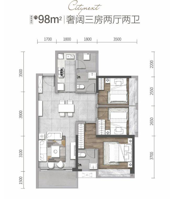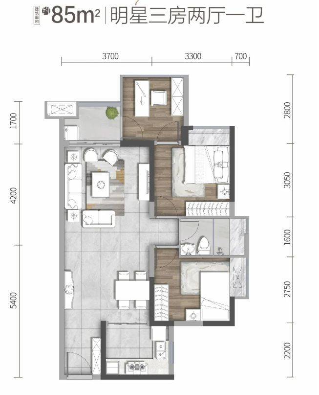 对于刚需小家庭而言,85㎡左右做到三房,空间利用率较高。可能采用紧凑实用的设计,客厅与餐厅相连,形成开阔的公共活动区域,满足家庭日常的休闲、用餐需求。卧室虽面积相对不大,但合理布局可保证基本的睡眠与收纳功能。其中一间卧室可作为儿童房,为孩子打造专属小天地。厨房设计或许采用 “L” 型或 “U” 型,充分利用空间,操作台面充足,方便烹饪美食。整体户型方正,动静分区合理,休息区与活动区互不干扰,让小家庭在有限的空间内享受舒适生活。